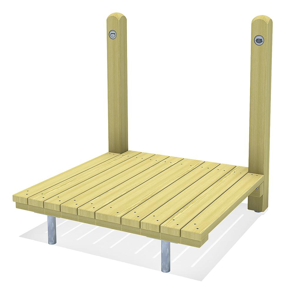 | Komplektacija | 2x stulpo konstrukcija: spygliuočių mediena, cinkuotas plienas 1x platformos konstrukcija: spygliuočių mediena |