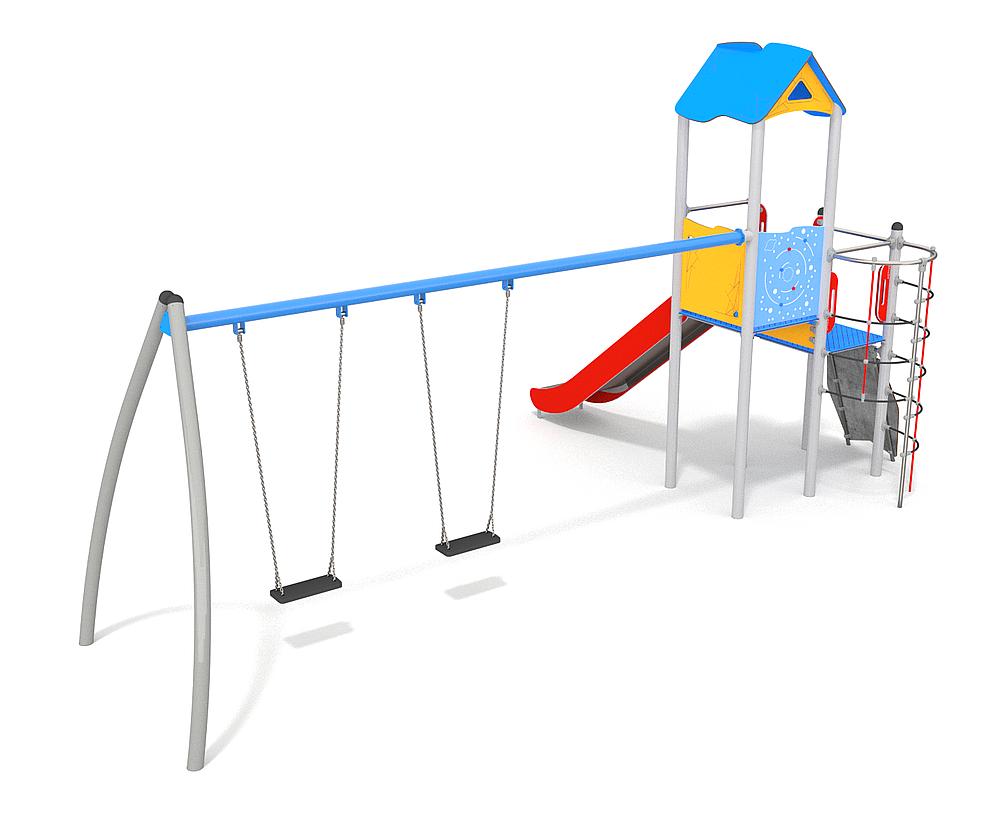 | Komplektacija | 1x žaidimų bokštas su stogu: miltelinis plienas, HDPE, aukšto slėgio laminuotas (HPL), nerūdijantis plienas 1x žaidimų bokštas: miltelinis plienas, HDPE, aukšto slėgio laminuotas (HPL), nerūdijantis plienas 1x tinklinis kaminas: polipropilenas 1x rampa: aukšto slėgio laminuotas (HPL), poliesteris 1x sūpynės: miltelinis plienas, guma 1x čiuožykla HP 150 cm: nerūdijantis plienas, HDPE |